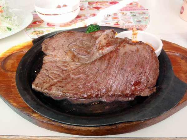 ちなみに私がオーダーしたのはこの安さがウリのステーキセット。(税込み1,048円) う~ん・・・ 味はやはりそれなりだった。(^^;)