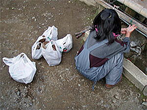 農家まで戻るとおじさんが居て、土で汚れた手を洗う場所を教えてもらい手を洗っているとその間にお茶を入れてくれた。 そしてお茶をご馳走になり、それと一緒に美味しいたくあんと梅干しも頂いた。このたくあんと梅干しの本当に美味しい事!(^^) あかりも自宅に帰ってからも「あのたくあんと梅干し、美味しかったね!」とず〜っと言っていた程である。