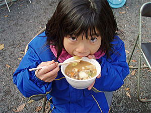中津川林道を抜け中津峡へと戻ると、途中往きに見掛けた「しし汁」の売店付近にバイクを停めた。考えてみれば早朝コンビニで食べた肉まんと鳥のから揚げしか口にしておらず、お腹が空いたのでこの「しし汁」なるものを食べる事にする。「しし汁」とは言うまでも無く、猪の肉が入っているのだが、この肉は思っていた程固くなくそして汁自体良く出汁が出ていてとても美味しかった。(1杯400円) ところで、私は里芋が嫌いで食べられないのだが、あかりのしし汁には里芋が1個入り、私の方には1つも入っていなかったのもラッキーだった。