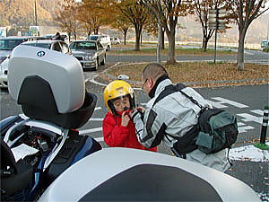 下田さんも前回より無線環境をパワーアップし、KTELの新型ステレオヘッドフォンセットをシューベルトのJ1へルメットに埋め込み装着、今回は万全の体制だ。