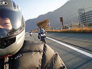 センターラインはイエローだったが、バイクが通れるだけのスペースが空いていたので、前に前にと慎重に進む。するとまず目に入ったのが消防自動車の赤色灯だった。そして最前部付近まで来るとそこには前部が全く原型を留めない程大破したレーシングレプリカ型のバイクが対向車線側の中央に転がる悲惨な事故現場であった。そのバイクに乗っていたと思われる人影は消防自動車の影となり良く見えなかったが、しばらくして救急車も到着し大騒ぎとなっていた。 大貴もそのあまりにも悲惨な事故現場を見て、少し恐怖を感じたそうだ。私も改めて安全運転の大切さを実感する光景であった。事故に遭われた方が一命を取り留める事を願うばかりだ。