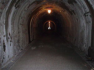 少し歩くと直ぐに「明治に出来たトンネル」は在った。一目見て、いかにも明治時代に造りましたと言うノスタルジックな風靡を持つトンネルである。しかし、その造りはしっかりしており、軽井沢方面のめがね橋近くのトンネルと比べると崩壊しかけている箇所もなく立派な状態の良いトンネルであった。