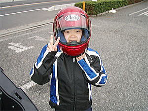 今回一緒に行くのは「やっと順番が来た!」と言うひかり(次女・小5)だ。今回からBMW純正ウェアのジュニアクラブジャケットと、ストークスーツのパンツを履く。やっと身体に合ったバイク専用のジャケットとパンツを買ったのだ。(^^) そしてお気に入りのARAIの赤いヘルメットを被り、「温泉!温泉!」と嬉しそうに満足そうだった。