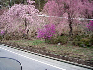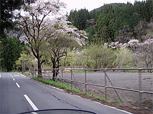 温泉を出ると国道299号線を東に進み、国道462号線で県道71号線土坂峠を目指した。途中桜やピンク色の花咲き、大きな岩が有ったり鯉のぼりが有ったりと中々見所も多い。沢山の鯉のぼりを見つけた時に何処かにバイクを停めようかと一旦その場所を通過し、県道71号線の入口付近でUターンしたのだが、その時初めて県道71号線が土砂崩れで通行止めなのに気が付いた。