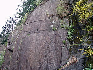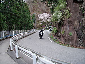 国道140号線から国道299号線に再び入り、奥へ奥へとひたすら進む。途中までは市街地を抜けるような道(黒海土バイパス)だが、県道37号線との交差点を抜けると狭い山道となる。志賀坂峠までの区間はまだまだ桜が咲いていて、所々景色の良い場所が点在する。そのビューポイントにはライダーがバイクを降りて写真を撮っている姿も良く見かけた。そして急勾配かつ急カーブの続く坂道をしばらく走ると恐竜の足跡が有る「さざ波岩」に立ち寄った。