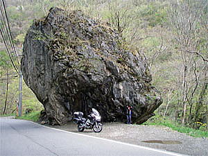 国道462号線を走行していると大きな岩が目に留まるそれがこの写真だ。R1200RTと比較するとその大きさが良く判る。ひかりが岩を抱えているリアクションをとるが・・・(^^;)