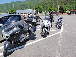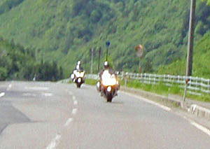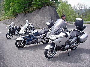 右の写真は右下の写真で写っている、後続の亀ライダーさんのFJR1300Aと下田さんのR1200RTの写真を拡大したものだ。