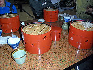 私達がお店に入った時には1組の家族客しか居なかったのだが、注文しようとメニューを見ていると急に大勢のお客さんが入ってきた。それも1つの団体さんではなく家族やカップル、小グループなど色々だった。そしてあっと言う間に店内は満席となり、順番待ちのお客さんも出てきて旅館の出入口が待合室となってしまった。ここでもまた先程のアイスクリーム工房と同様グッドタイミングだった。