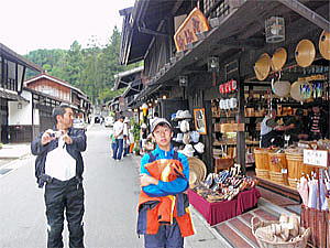 値段表示されていないガソリンスタンドは要注意だ。私はその値段を下田さんから聞き、まだ燃料に余裕が有ったのでここでは給油を見送った。(ーー;) そしてその後「木曽の大橋」前の駐車場にバイクを停め、奈良井宿を散策することにした。