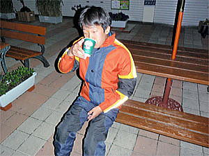 到着時まだ時間が早かった為、SA内のパン屋さんも準備中でパンも買えない。(^^;) 取りあえず温かいミルクティーを飲みながらパン屋さんの営業開始を待ち、開店と同時に早速パンを購入。大貴も私もカレーパンとトルティーヤ(ソーセージを薄いパン生地で巻いたもの)を食べる。