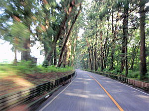 見事な杉並木の間を走行