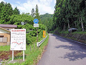 そして伴久と言う立派な温泉旅館の先の道を左折し、いよいよ安ヶ森林道の入口である安ヶ森峠へと向かう。安ヶ森峠までは一応舗装された道なのだが、木の枝や石がゴロゴロと転がっていて、大きなロードバイクだときっと走りたくなくなるだろうなぁと思った道だった。