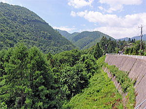 湯西川温泉付近まで来ると平家ゆかりの施設が目につく様になる。それもその筈、湯西川温泉は平家落人伝説の村でもある。せっかくなので湯西川温泉街をバイクを降りて散策してみた。橋のたもとの階段を下りて川沿いを歩く。河岸に立ち並ぶ温泉宿は少しレトロな感じが強く残る。しかしここの温泉、入浴中の人はいなかったが男湯も女湯も外から丸見えの露天風呂ばかりだった。(^^;)