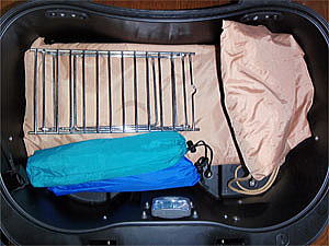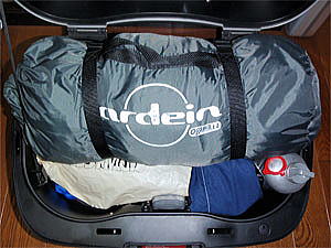 TOPケース内にはテントなどの大物で到着時直ぐに使用する物や、他のバッグに入らなかったものを積載します。