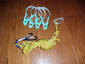洗濯バサミとロープ&カラビナ |