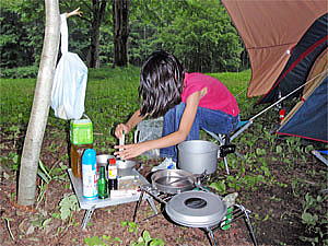 コッフェル(中にスポンジ、100円ライター使用のハンディバーナー、塩、しょうゆ、洗剤等) キッチンペーパー(必需品です) 予備のガスバーナー 温泉セット 虫除け類(テント用、香取線香) |
