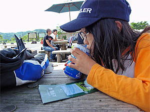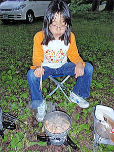 食後はまだ明るかったので川原を歩いたりして過ごした。この日の夜はまずまずの天気で、念願の星が少しだけ見えたのだがひかりはかなり疲れたらしく、星を見ずにぐっすりと早めに眠った。