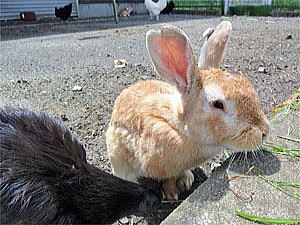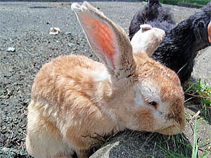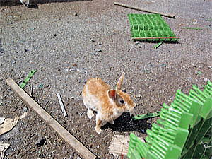 一通りふれあい牧場をぐるっと周ると、結局またウサギの居る場所まで戻った。ひかりに写真を撮るように頼まれ餌(雑草)を食べているウサギの写真を撮ろうとするが、黒いニワトリがやたらとカメラの前にやってきてシャッターチャンスを邪魔される。(笑) この黒いニワトリはとっても人懐っこくて可愛いのだが、相当腹が減っているらしく面白い事にウサギにやっている草まで一緒に食べていた。ニワトリにも食べられる餌があれば買ってあげたいとも思ったのだが、残念ながら見当たらずあげれなかったのだ。