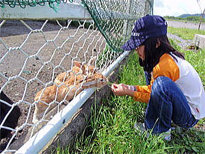 その後しばらくひかりはウサギの場所から離れず、結構長い時間ウサギに餌をやっていたが、他にも馬が居るから見に行こうと言うとやっと動いた。