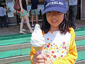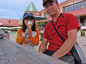 やっとウサギへのふれあいに満足し、今度はレストハウスの方に戻ってソフトクリームを食べる事にした。ここのソフトクリームは味は濃く色が白いのが特徴だ。
