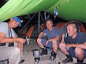 朝早かったと言うか寝ていないとも言える大貴も寝てしまう事もなく、キャンプスタイルについての話題で盛り上がった。takothinさんは実は野宿の達人なのだがその事とキャンプ用アイテムの事で会話が弾んだ。とても楽しい時間だったが皆それなりに疲れていて眠くなり、夜遅くにお開きとなり眠りについた。