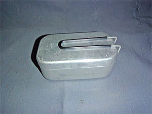 上記の写真はトランギア製のメスティン(TR−210)ソロ用(大きさ:17×9×6.5cm)です。蓋がしっかりと閉まりご飯を炊くのには向いていますが、小さいがゆえにそれ以外の使用は難しく、結局小物入れとして活躍しています。(^^;)