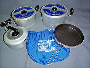 2008年の夏のキャンプツーリングで3人分のレトルトカレー&ライスを温めましたが、その時は何とか中型のコッフェルでまかなえました。しかし、やはり余裕をもたせるにはもう少し大きめのコッフェルが必要です。