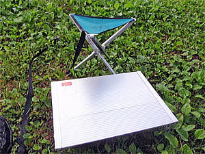 これが有るのと無いのとではキャンプの快適さに大きな差が出るのがミニテーブルです。折り畳むと非常にコンパクトになり、大型のトップケースにも余裕で収納可能です。テーブル面は汚れが落ち易く、長年使用していますが耐久性はまったく問題ありません。唯一もう少し高さがあれば良いと思いますが、製品自体のクオリティは現在もこれが1番だと思います。