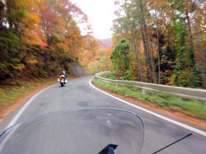 待ち合わせの場所は関越自動車道の三芳PAに6:15。関越道へと目白通りを走行すると早朝にもかかわらず渋滞気味。(^^;) やはり紅葉シーズン、日光や妙義山と言った超有名紅葉スポットが存在する関越道はこの時期激しい渋滞が予想される。やっとの思いで三芳PAに到着すると今度はバイクの駐車スペースの狭さに絶句。良く利用する中央道談合坂SAの様に最近急増しているバイク用の駐車スペース拡大を早急に望みたい。