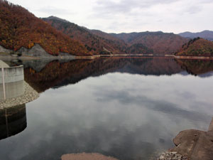 奈良俣湖は比較的風も無く、湖面には対岸の山や紅葉を美しく映していた。提頂は気軽に歩けるようになっていて、このダム自体の雄大さも体感出来る。ここは私の紅葉シーズンのお気に入りスポットになりそうだ。