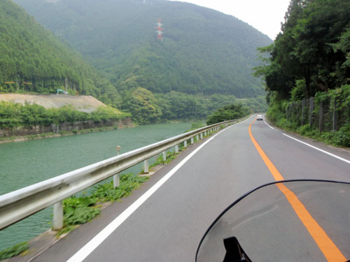 ここからしばらくは道幅も広く視界も広けた快走ルートを走ることになる。川沿いの道でダムへと注ぐ川幅は広いがここはフォッサマグナ沿いの道だそうだ。