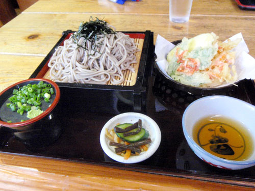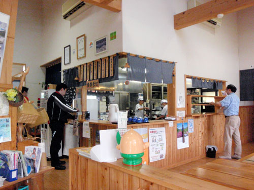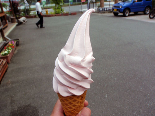 ここで食事をする事となり私は天ぷら蕎麦を食べた。味と値段はまぁまぁと言うところか。それと食後のデザートとして人気の有りそうな「花桃ソフトクリーム」を食べた。このソフトクリームの味は桃味ではなく苺味。ソフトクリームの色が花桃のイメージと言う事らしい。ちなみにこのソフトクリームは美味しかったが溶けやすいので注意が必要だ。