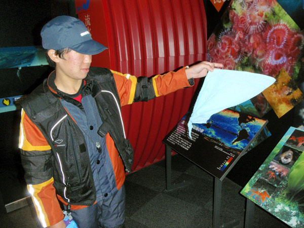 5日目最初に立ち寄ったのは屈斜路湖を見下ろす藻琴山展望台PA。ここで屈斜路湖を見納めしてから先へと進んだ。そして次に立ち寄ったのが「オホーツク流氷館」だ。ここではマイナス16℃を体験出来るゾーンが有り、濡れたタオルを振り回すと一瞬のうちに凍ってしまいカチカチに固まってしまう体験もした。(下写真)