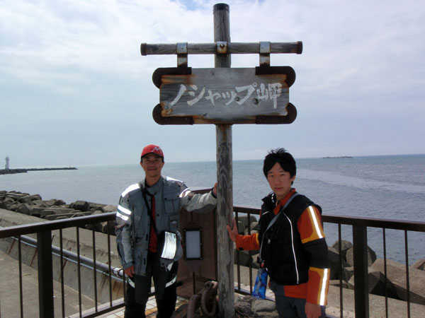 ここまでの途中、何度か厚い雲に覆われ何時雨が降ってもおかしくなかった天候だったが、結局奇跡的にもまったく雨に降られず宗谷岬に到達出来た。(11:19) 宗谷岬へ到着するとまずは大貴と記念撮影。大勢の人達が訪れる中、シャッターを押してもらった。