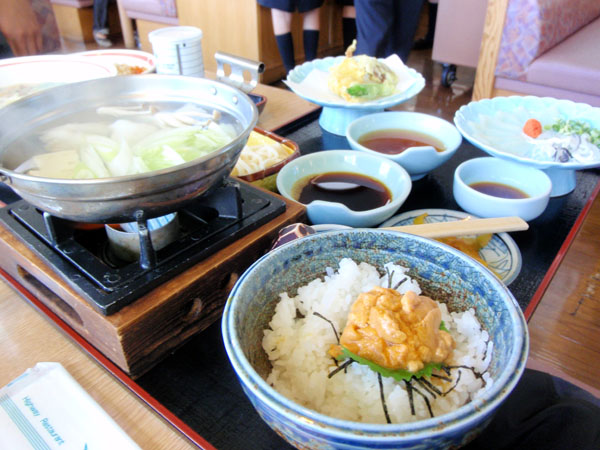 そしてこちらがあかりが注文した「馬関祭膳」。(1,880円) ふぐの王様「トラふぐ」の刺身が付いた一品。結構豪華だ! ちなみに手前はうに丼であかりは苦手との事で私が食べた。 あかりとしては初めて食べたふぐ体験。 「美味しい!美味しい!」を連発しているあかりを見て、食欲もある元気な姿に正直ホッとした。(^^)