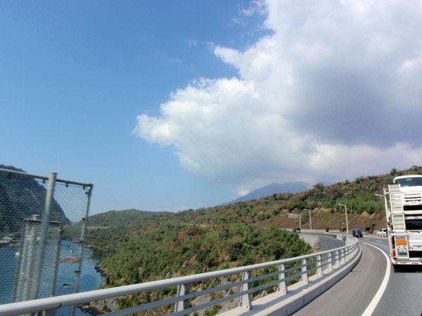 しかし、結局天気も良く桜島も海を挟んでクッキリと見えていたのでそのまま突き進む事にした。 国道224号線に入るともう目の前には迫力の有る桜島の御岳の姿が間近に見える。