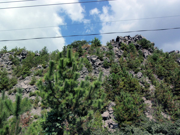 国道224号線を走ると目の前に現れたのは溶岩の姿だった。ふと、北海道の昭和新山の風景を思い出してしまった。