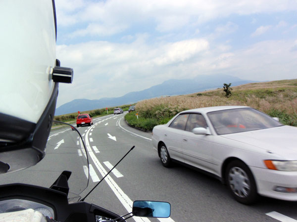 県道111号線で阿蘇山へは一気に高度を上げていくので眼下に見える景色がとても圧巻だった。草原が広がり高い木が無いため視界はすこぶる良好だ。車体はキャンプ道具満載で重たかったがワインディングも何とか楽しめた。