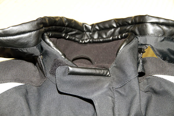 冬の寒い時や降雨時に有効なカラー部分は着脱可能となっており、不必要時は取り外す(チャック式)事も可能です。また、襟部分の汚れ防止対策として、首の回りに肌と常に触れる部分には革の素材でガードされています。
