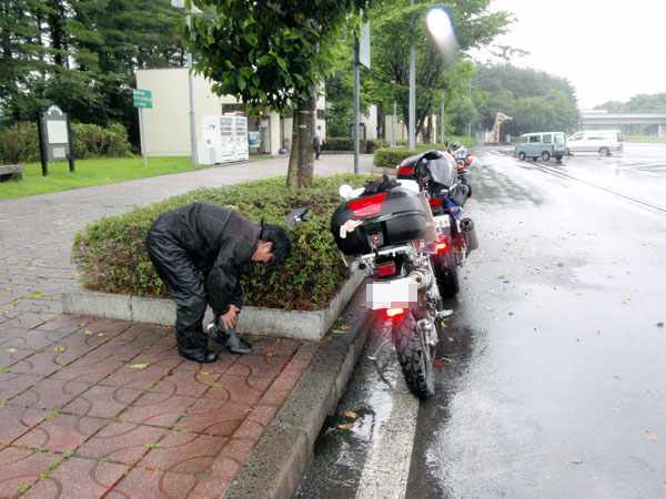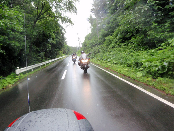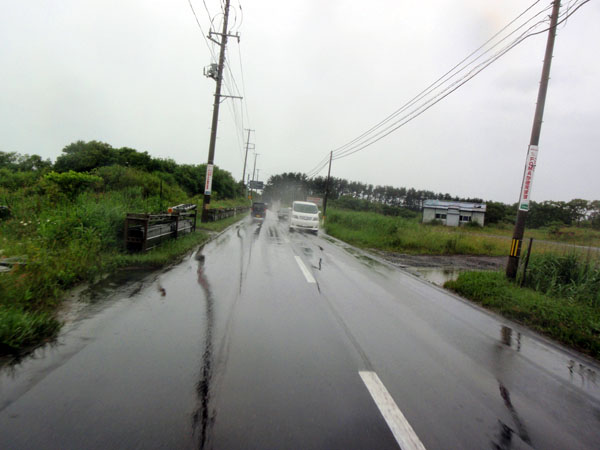 コンビニから出発すると、この後は結構強い雨が降る中の走行となった。路面には大きな水溜りが出来ていて、対向車のトラックからの水しぶきがシンさんをモロに直撃したこともあった。(^^;)