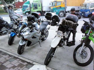 下の写真、キリンさんがCB1300SFを遠くに停めてしまったので3台しか写っていません。w