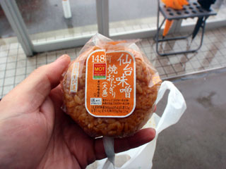 私はコンビニでは仙台味噌焼おにぎり(大盛・148円)とアメリカンドッグ(105円)を食べたが、雨が強く降っていた為ヘルメットを持ったまま店内に入り、結局お店の出入口付近で立ったまま食べると言う、バイク乗りならではの辛いスタイルでの休憩となった。