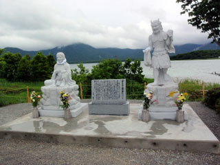 テントを撤収した後、大間崎ではお約束の記念撮影をする。下の写真はキリンさんのパフォーマンス写真。手前はogmさんだ。拳骨で殴られたと言うシチュエーションらしい。(^^)