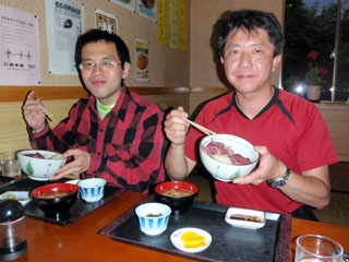 テントを張って荷物を降ろした後、いよいよマグロ丼を食べに行く事にした。(18:30頃) 今回の目的でもある大間のまぐろ丼を食べに行ったのはツーリングマップルにも載っている「すみよし食堂」だ。