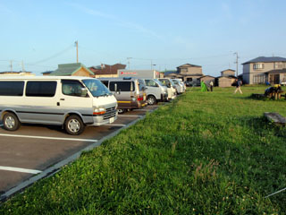 2日目の朝は5時過ぎに起きた。周りを見渡すと既にテントを撤収中のライダーがいたり、車中泊をしていると見られるワンボックス、チャリダーなどの姿も多く見られる。水場の建物内にはバイクごと中に入って野宿しているライダーの姿も・・・。(^^;)