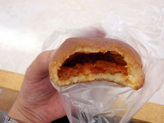 岩手山SAではパンを食べた。(14:33) 結構美味しかったカルツォーネ(240円)はトマトソースにベーコン、チーズ、パプリカを加えたピザ風の食べ物で、食べ応えも十分だった。