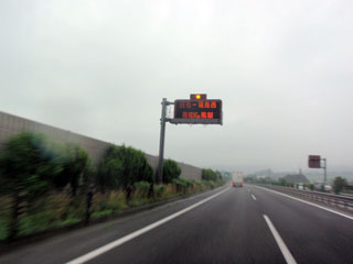 蓮田SAを出発してからは、前方の空は雲が多いものの頭上はず~っと晴れている状態でのツーリングとなった。念のため着ていたレインスーツが次第に暑く感じられてくる。それでも高速道路の交通情報表示には「○○-○○ 雨80km規制」との表示がされていた。