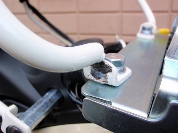 そしてもう1箇所下側の支点となっている部分も、ボルト自体根元が折れてしまった。(下の写真)