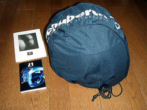 自宅で箱を開け、中身を確認してみると付属品は結構ぶ厚い説明書が1冊。薄い日本語版説明書が1冊。ヘルメットの袋はまぁまぁしっかりとした造りの物だった。