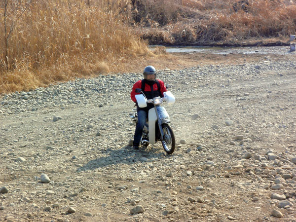 集合場所のマックからオフトレ会場となる河川敷へは直ぐ近くだ。早速相模原の河川敷に入ると、いきなりハードな不整地走行となり、ボルドーさんが早くもコケる。(^^;) そしてここからコケた順に番号を付ける事となる。ボルドーさんは1番だ。(^^)